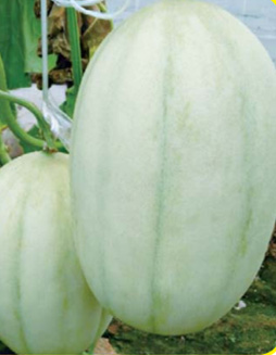 国内著名甜瓜专家最新育成,果实发育期 40-43 天左右,果实为椭圆形,果皮白色,果肉为粉红色,肉质酥脆。中心折光含糖18%左右,单果重2kg左右。植株生长势中等,适宜于大棚、露地种植。