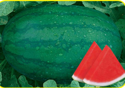 国内著名西瓜育种专家最新推出的中早熟、大果型、优质、抗病、耐重茬西瓜新品种,全生育期 100-105 天,果实发育期 30 天左右。长势强健,易坐果,主蔓第 7 至 8 节出现第一雌花。果实椭圆形,皮色墨绿覆暗绿条带,果肉大红,肉质脆沙,爽口多汁,果实中心遮光糖含量13.5%,品质极好。果皮薄而韧,不裂果,耐运输。一般单瓜重8-12公斤,最大者达25公斤,嫁接栽培果型更大,亩产 5500-6000 公斤,管理水平高时超过 7000 公斤。