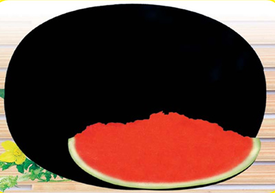 中熟 皮薄 肉鲜红 瓜甜 本品种是著名的西瓜专家精心选育而成,中熟品种,全生育期 95-110 天,果实短椭圆型,皮薄,耐低温,耐弱光,果皮黑色,果肉鲜红,清甜爽口,不空心,中心糖 12 度,高抗枯萎病,耐重茬。果实大,产量高,瓜甜,单瓜重 8-15 公斤,亩产 10000 斤以上。