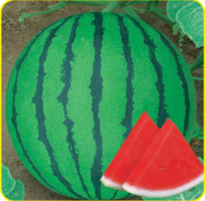 早熟 耐低温 易座果 高产 抗病 台湾著名西瓜育种专家最新育成,果型正圆,高糖,花纹清晰,成熟时覆蜡粉,外观品质极佳,瓜瓤大红色,八成熟即可上市,皮薄,脆口酥甜,瓜香宜人,中心糖度 13.6 度。受粉后 26-28 天左右即可采收,单瓜重 8-10 公斤。不脆裂,极耐贮运。由于特有耐寒性选育,该品种耐低温、耐弱光。膨瓜迅速,高抗炭疽病。是早熟大棚、中棚首选品种 , 亩产5000-6000 公斤。
